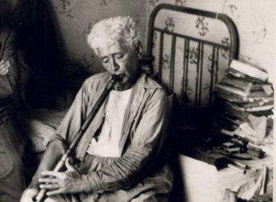 Etrafı süzüyordum. Tam derbeder bir bekâr odası. Kenarda bir karyola, karyolanın yanındaki duvar üzerinde irili ufaklı bir kaç ney, bir telleri noksan keman, öte yanda bir bağlama sazı var. Köşedeki minder üzerinde beyaz tüylü bir köpek yavrusu bezlerin arasına sarılmış yatıyor. Arada bir başını çıkararak bize bakıyor. Odada gaz ocağının çıkardığı bir is kokusu ve onun verdiği sıcaklık var. Neyzenin kıyafeti de bir acaip! Ayağındaki yün çorapların biri siyah, diğeri de beyaz.